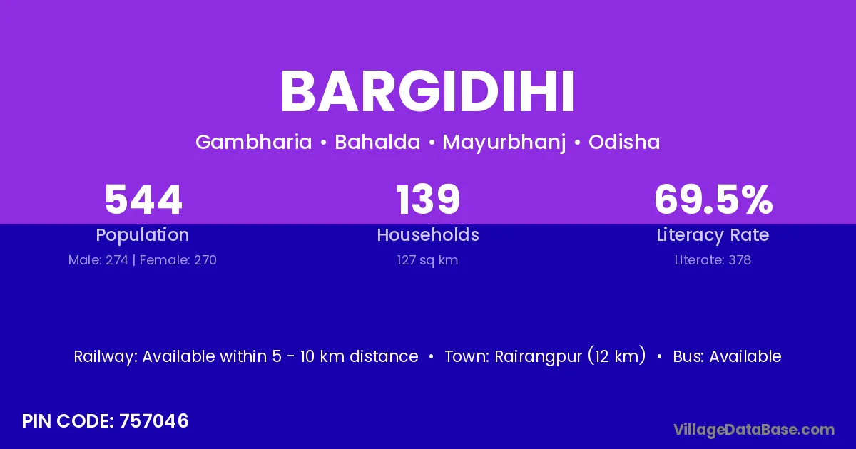 Bargidihi village has a total population of 544 people, of which 274 are males and 270 are females.