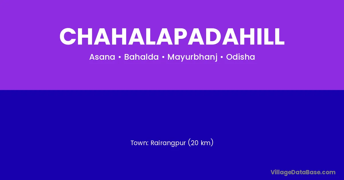 Rairangpur (20 km) is the nearest town to Chahalapadahill village for major economic activities and is located approximately 20 km away.