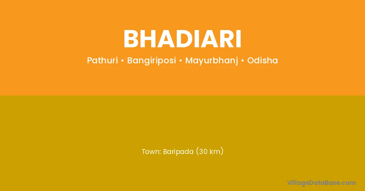 Baripada (30 km) is the nearest town to Bhadiari village for major economic activities and is located approximately 30 km away.