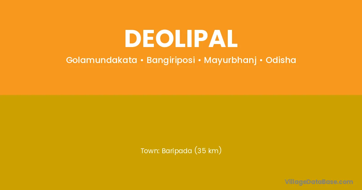 Baripada (35 km) is the nearest town to Deolipal village for major economic activities and is located approximately 35 km away.