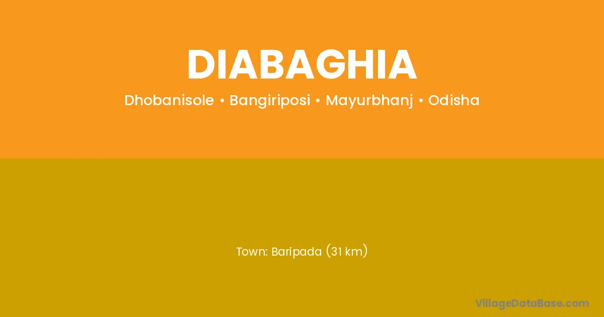Baripada (31 km) is the nearest town to Diabaghia village for major economic activities and is located approximately 31 km away.