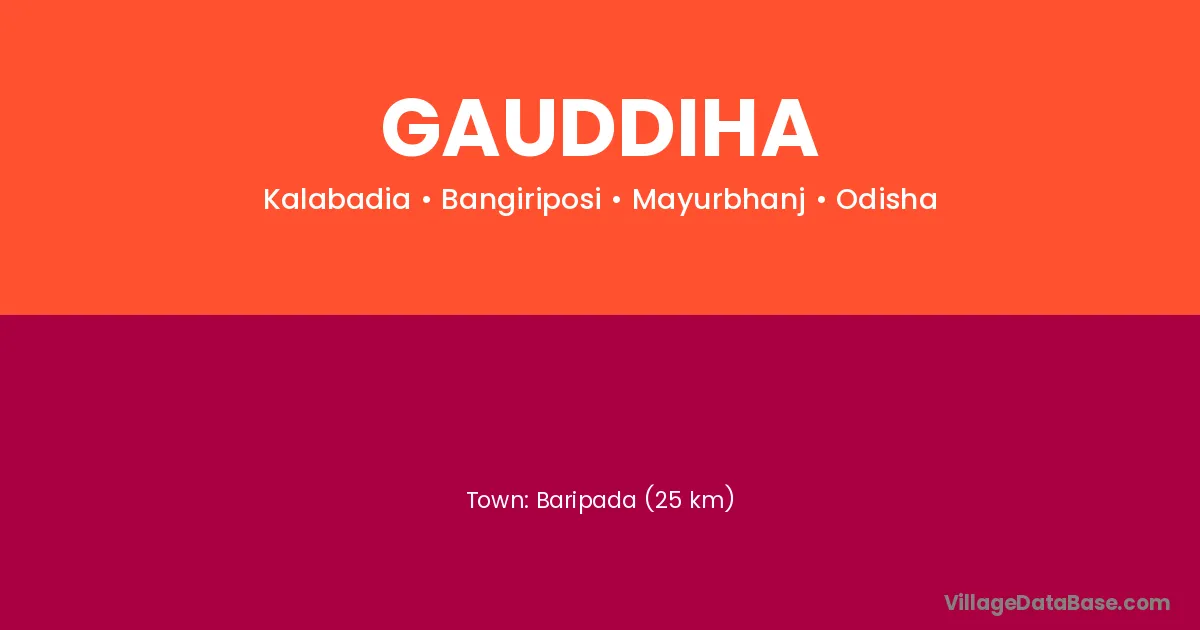 Baripada (25 km) is the nearest town to Gauddiha village for major economic activities and is located approximately 25 km away.