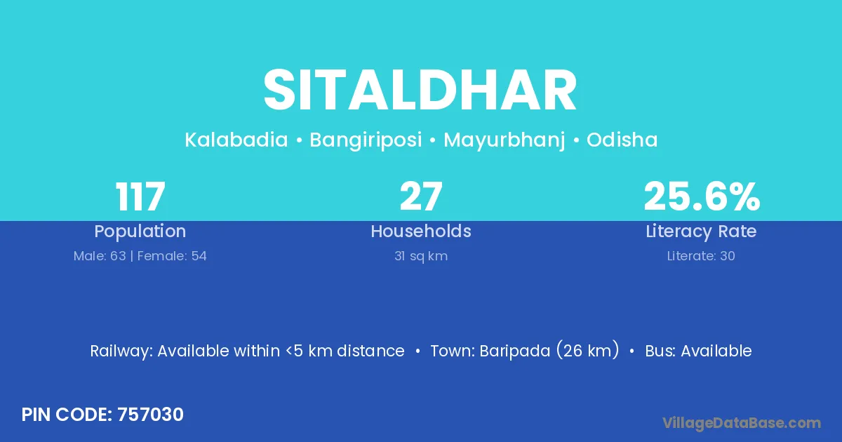 Baripada (26 km) is the nearest town to Sitaldhar village for major economic activities and is located approximately 26 km away.