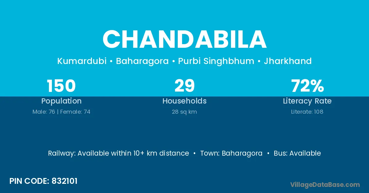 Baripada (18 km) is the nearest town to Chandabila village for major economic activities and is located approximately 18 km away.