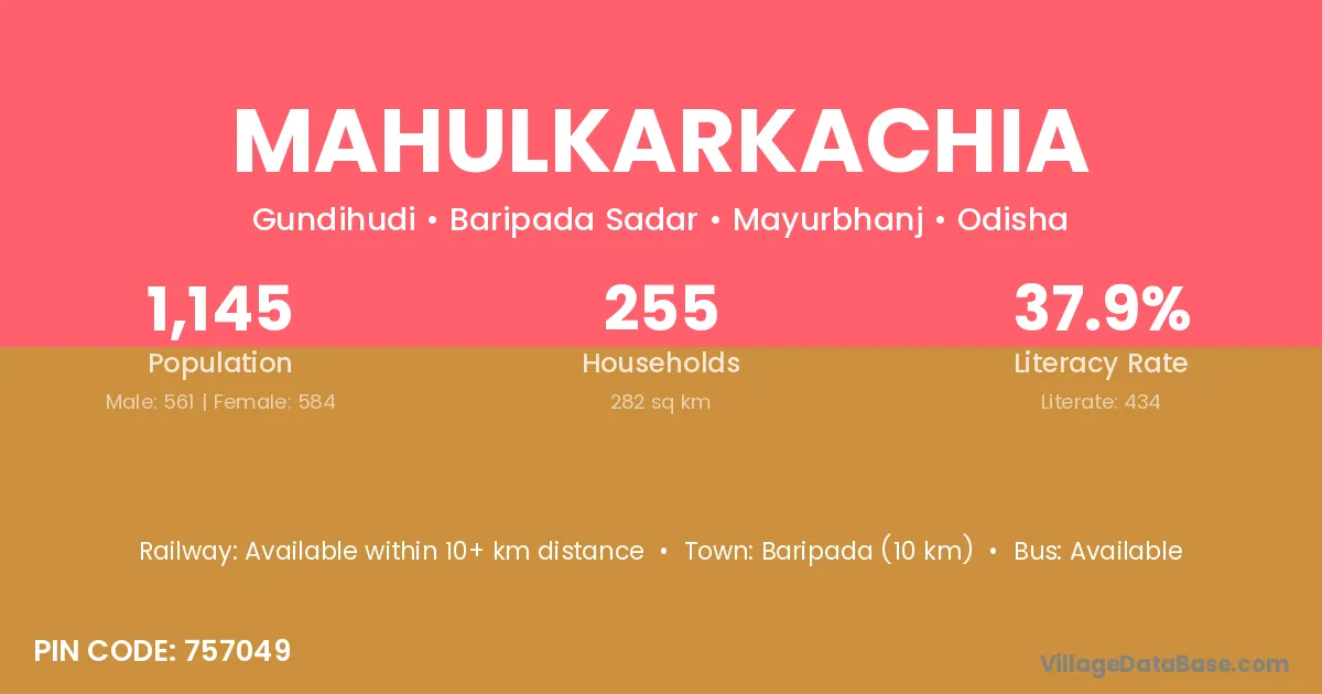 Mahulkarkachia village has a total population of 1,145 people, of which 561 are males and 584 are females.
