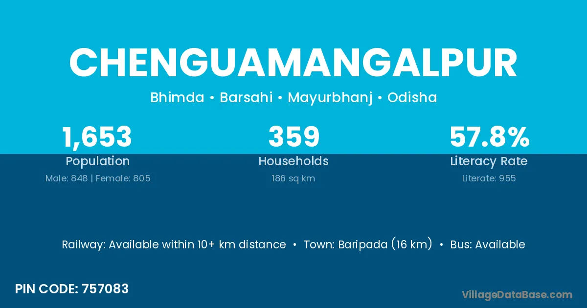 Baripada (16 km) is the nearest town to Chenguamangalpur village for major economic activities and is located approximately 16 km away.