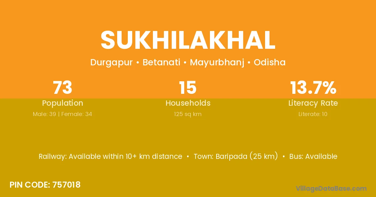 Sukhilakhal village has a total population of 73 people, of which 39 are males and 34 are females.