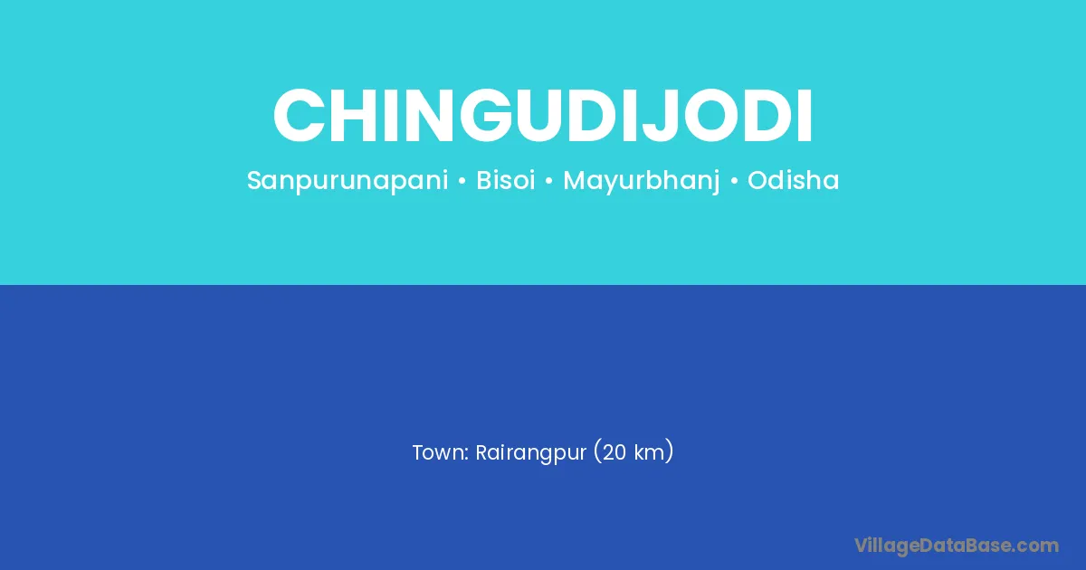 Rairangpur (20 km) is the nearest town to Chingudijodi village for major economic activities and is located approximately 20 km away.