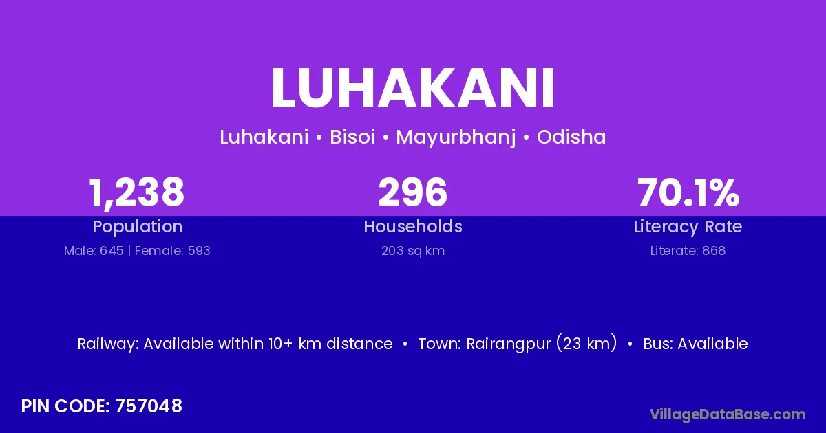 Rairangpur (23 km) is the nearest town to Luhakani village for major economic activities and is located approximately 23 km away.