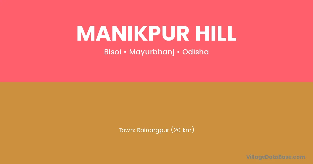 Rairangpur (20 km) is the nearest town to Manikpur Hill village for major economic activities and is located approximately 20 km away.