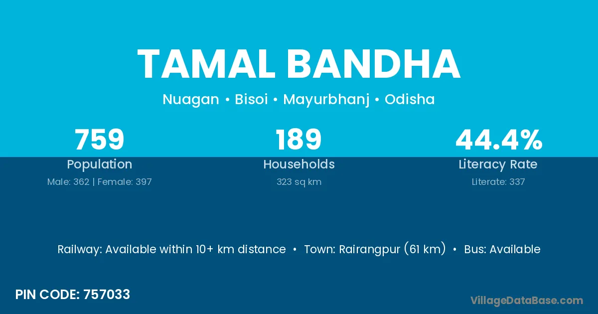 Tamal Bandha village has a total population of 759 people, of which 362 are males and 397 are females.