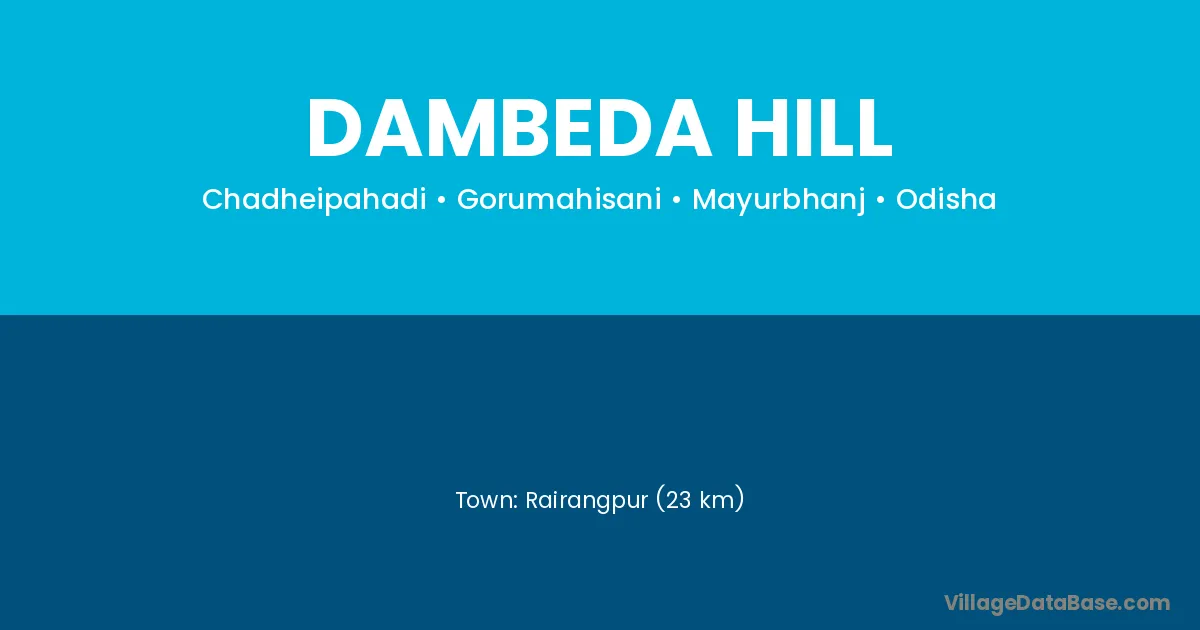 Rairangpur (23 km) is the nearest town to Dambeda Hill village for major economic activities and is located approximately 23 km away.