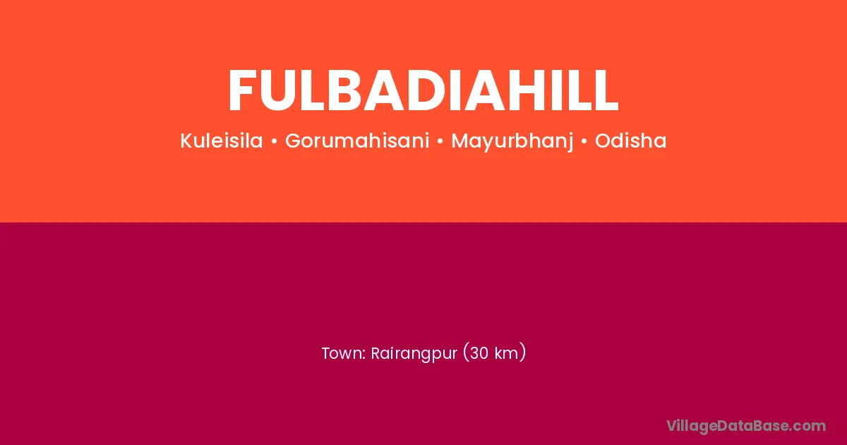 Rairangpur (30 km) is the nearest town to Fulbadiahill village for major economic activities and is located approximately 30 km away.