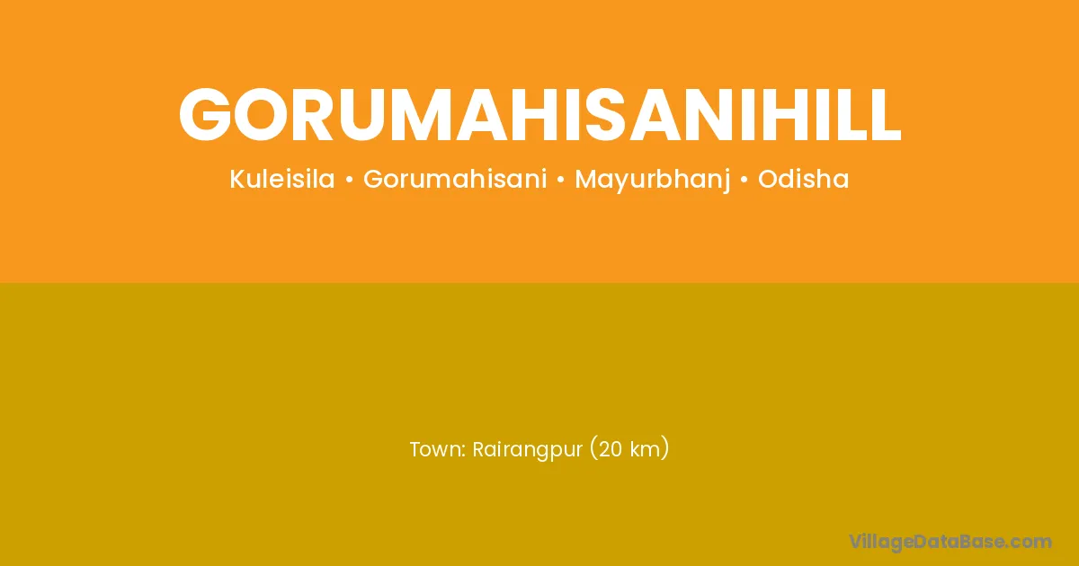 Rairangpur (20 km) is the nearest town to Gorumahisanihill village for major economic activities and is located approximately 20 km away.