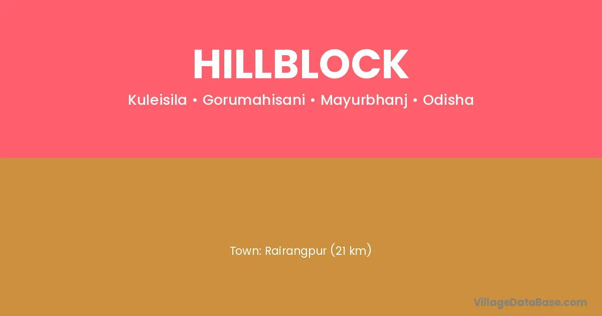 Rairangpur (21 km) is the nearest town to Hillblock village for major economic activities and is located approximately 21 km away.