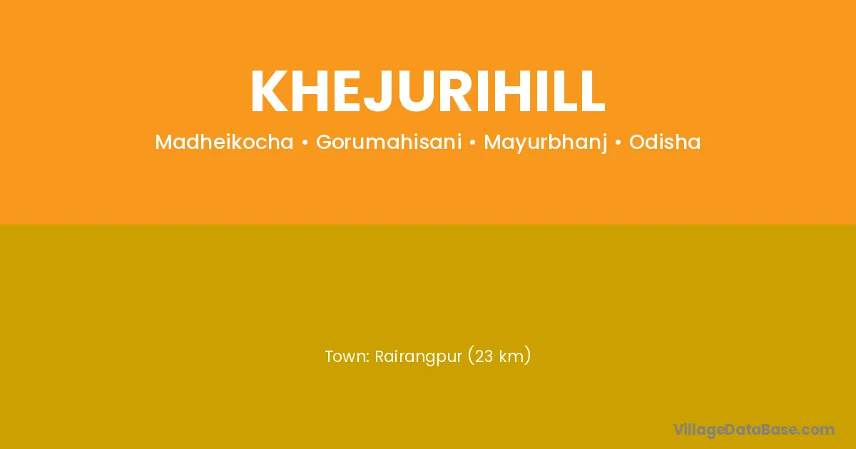 Rairangpur (23 km) is the nearest town to Khejurihill village for major economic activities and is located approximately 23 km away.
