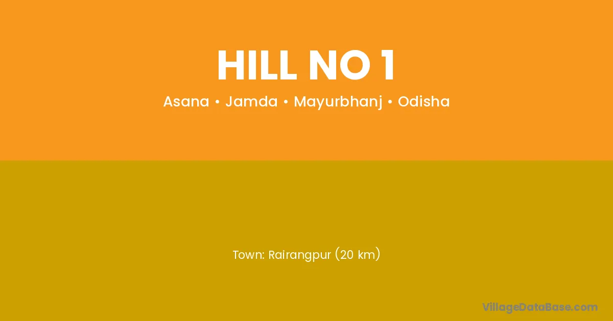 Rairangpur (20 km) is the nearest town to Hill No 1 village for major economic activities and is located approximately 20 km away.