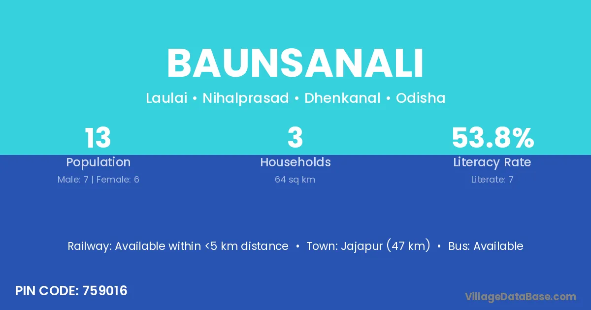 Karanjia (38 km) is the nearest town to Baunsanali village for major economic activities and is located approximately 38 km away.