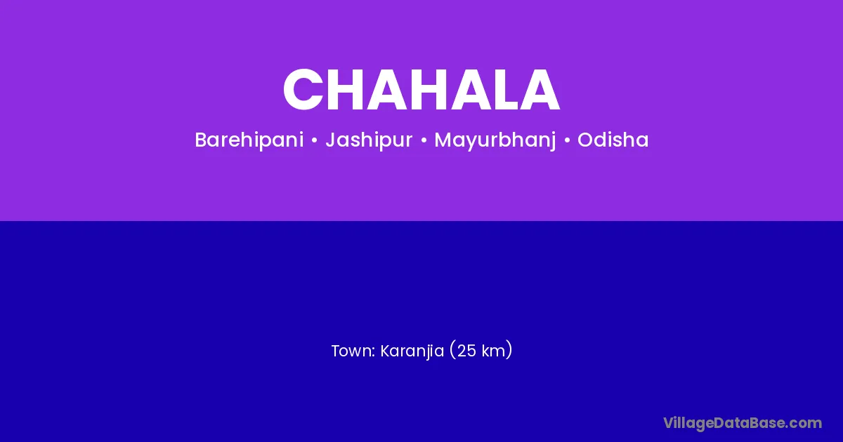 Karanjia (25 km) is the nearest town to Chahala village for major economic activities and is located approximately 25 km away.