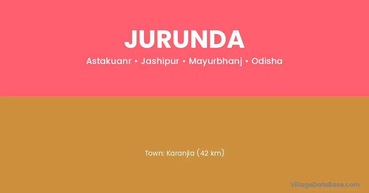 Karanjia (42 km) is the nearest town to Jurunda village for major economic activities and is located approximately 42 km away.