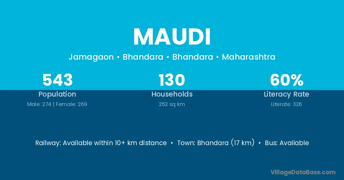 The literacy rate of Maudi village is 64.52%. Male literacy stands at 70.90% and female literacy at 58.62%.