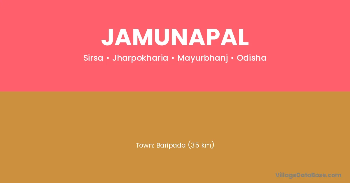 Baripada (35 km) is the nearest town to Jamunapal village for major economic activities and is located approximately 35 km away.