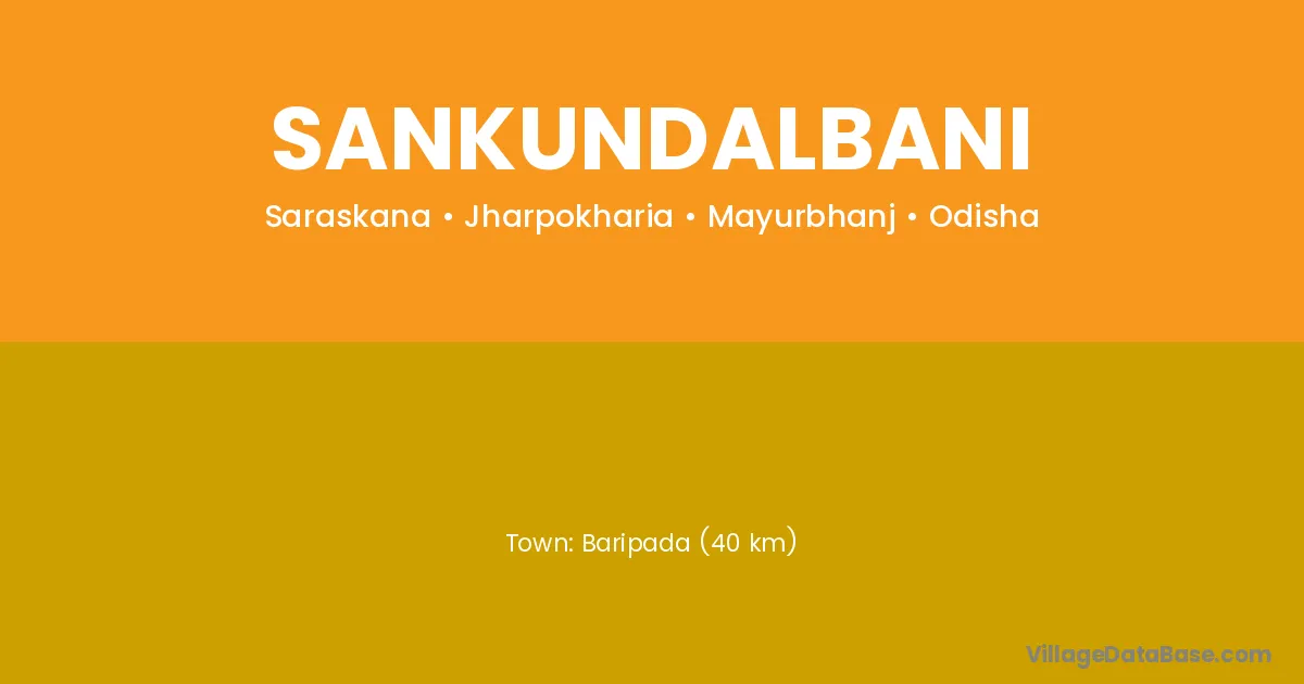 Baripada (40 km) is the nearest town to Sankundalbani village for major economic activities and is located approximately 40 km away.
