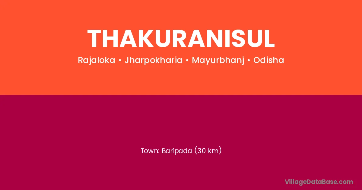 Baripada (30 km) is the nearest town to Thakuranisul village for major economic activities and is located approximately 30 km away.