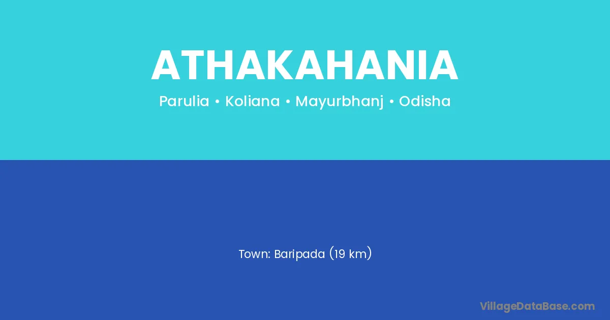 Baripada (19 km) is the nearest town to Athakahania village for major economic activities and is located approximately 19 km away.