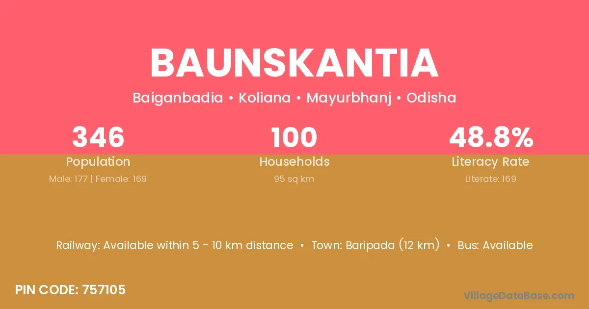 Baunskantia village has a total population of 346 people, of which 177 are males and 169 are females.