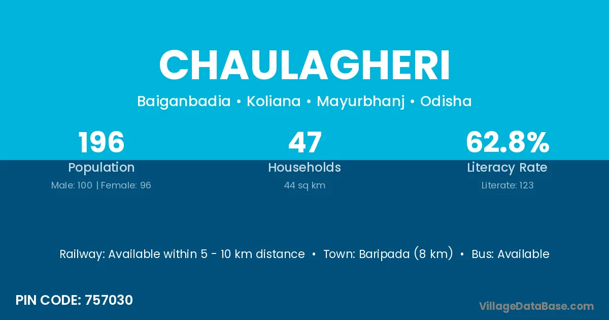 Baripada (8 km) is the nearest town to Chaulagheri village for major economic activities and is located approximately 8 km away.