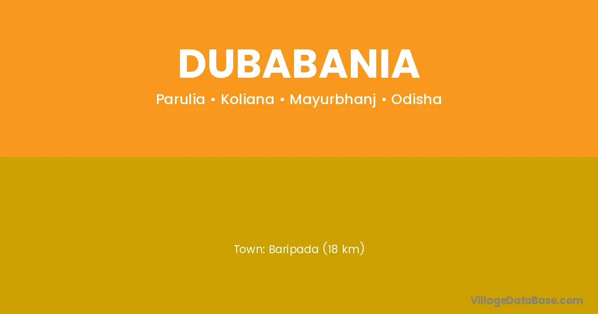 Baripada (18 km) is the nearest town to Dubabania village for major economic activities and is located approximately 18 km away.