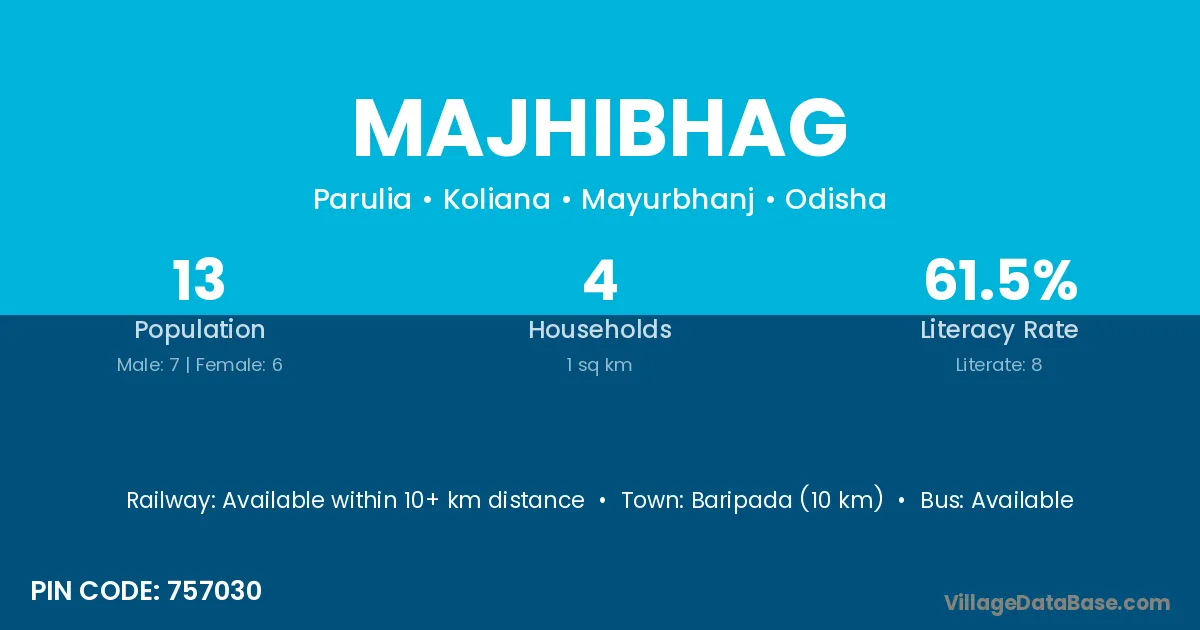 Baripada (10 km) is the nearest town to Majhibhag village for major economic activities and is located approximately 10 km away.