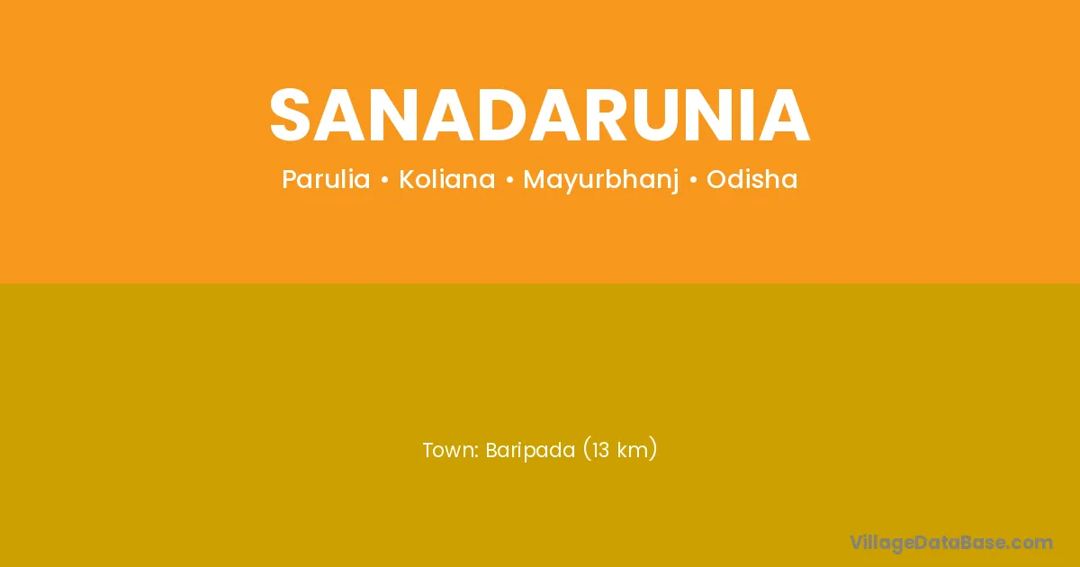 Baripada (13 km) is the nearest town to Sanadarunia village for major economic activities and is located approximately 13 km away.