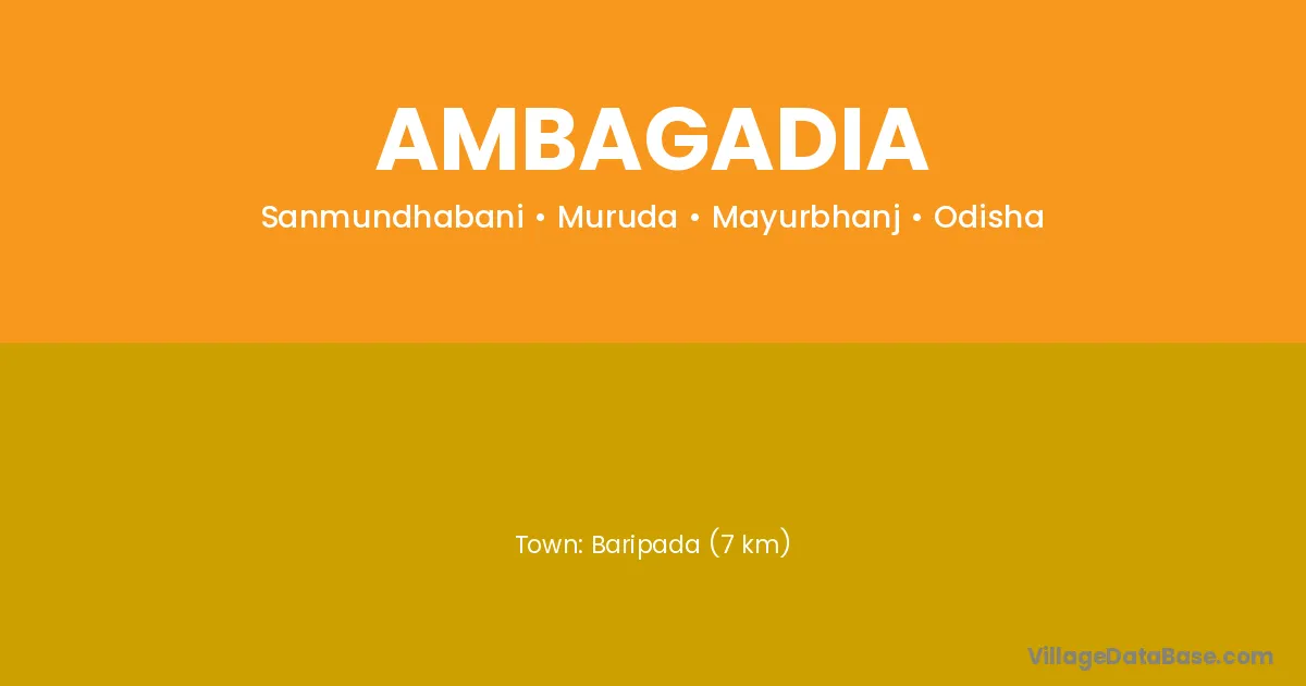 Baripada (7 km) is the nearest town to Ambagadia village for major economic activities and is located approximately 7 km away.