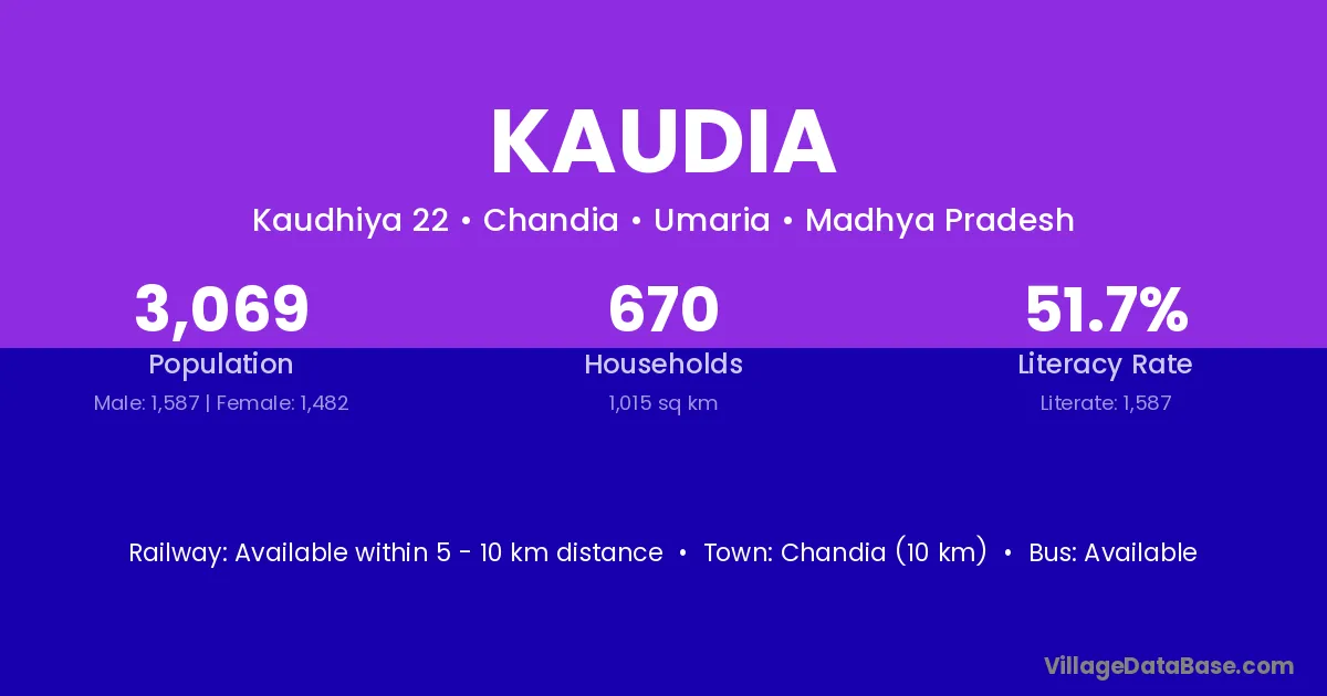 According to Census 2011 information, the village code of Kaudia village is 757023.