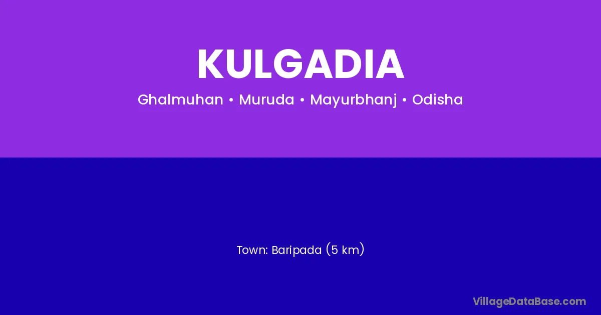 Baripada (5 km) is the nearest town to Kulgadia village for major economic activities and is located approximately 5 km away.
