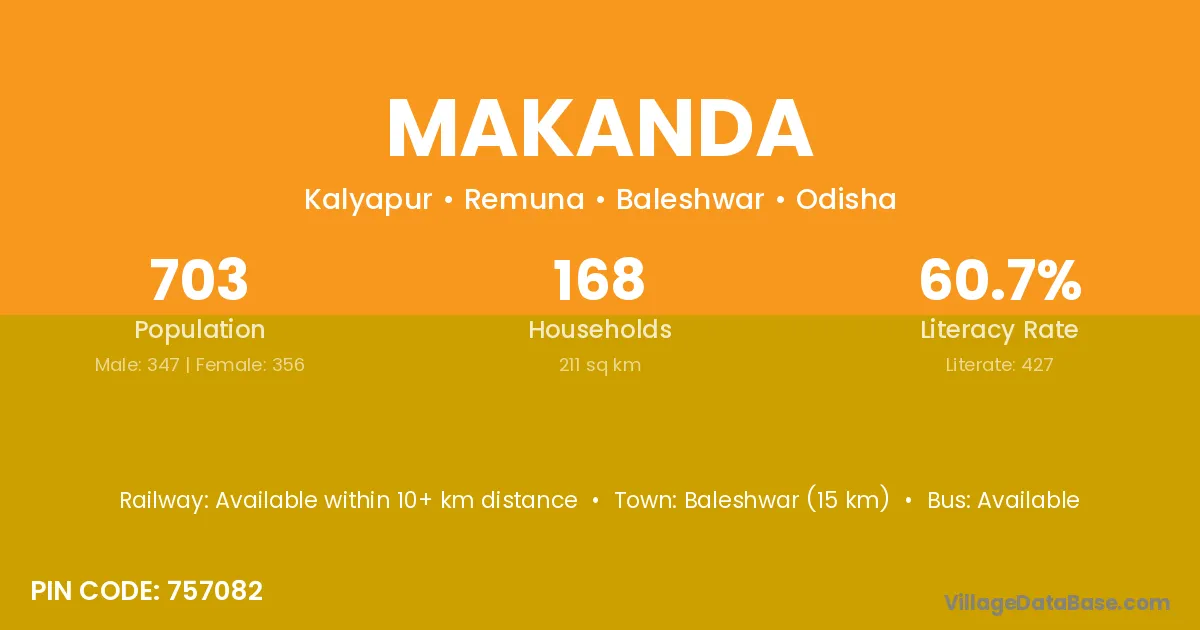 Baripada (36 km) is the nearest town to Makanda village for major economic activities and is located approximately 36 km away.