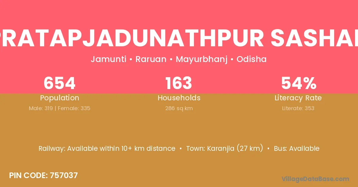 Karanjia (27 km) is the nearest town to Pratapjadunathpur Sashan village for major economic activities and is located approximately 27 km away.