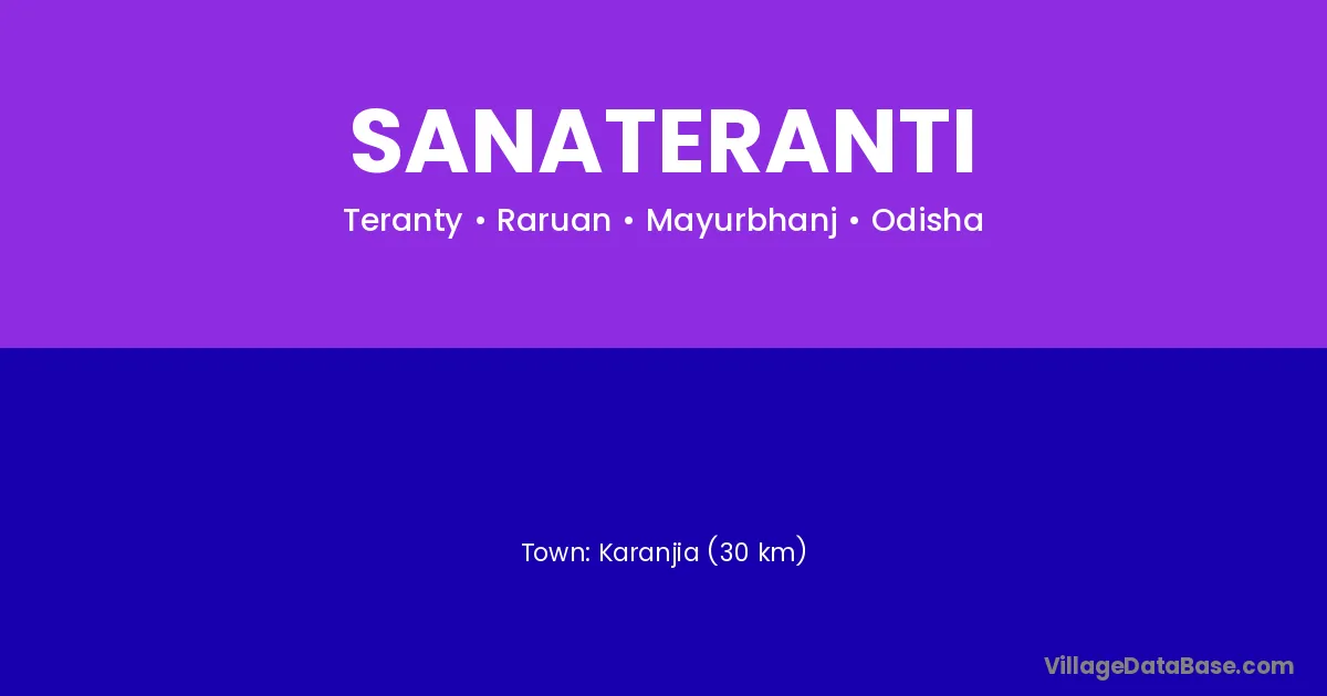 Karanjia (30 km) is the nearest town to Sanateranti village for major economic activities and is located approximately 30 km away.