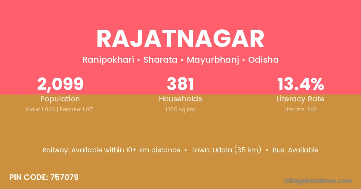 Udala (35 km) is the nearest town to Rajatnagar village for major economic activities and is located approximately 35 km away.