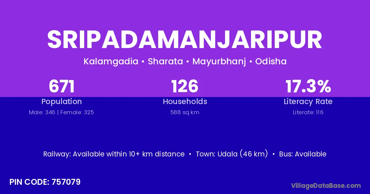 Sripadamanjaripur village has a total population of 671 people, of which 346 are males and 325 are females.