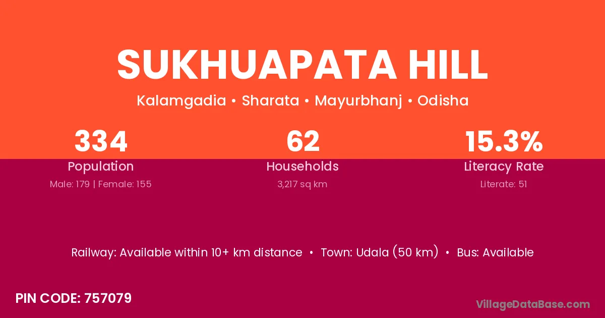 Sukhuapata Hill village has a total population of 334 people, of which 179 are males and 155 are females.