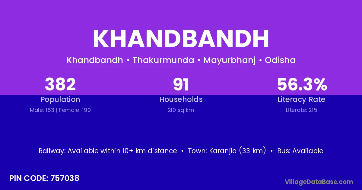 Karanjia (33 km) is the nearest town to Khandbandh village for major economic activities and is located approximately 33 km away.