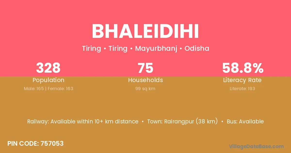 Rairangpur (38 km) is the nearest town to Bhaleidihi village for major economic activities and is located approximately 38 km away.