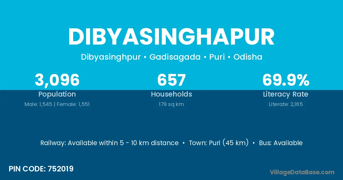 Udala (6 km) is the nearest town to Dibyasinghapur village for major economic activities and is located approximately 6 km away.