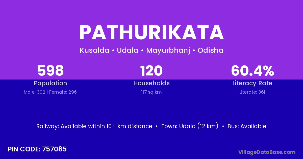 Pathurikata village has a total population of 598 people, of which 302 are males and 296 are females.