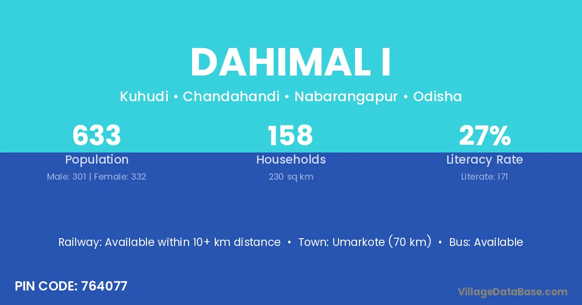 Dahimal I village has a total population of 633 people, of which 301 are males and 332 are females.