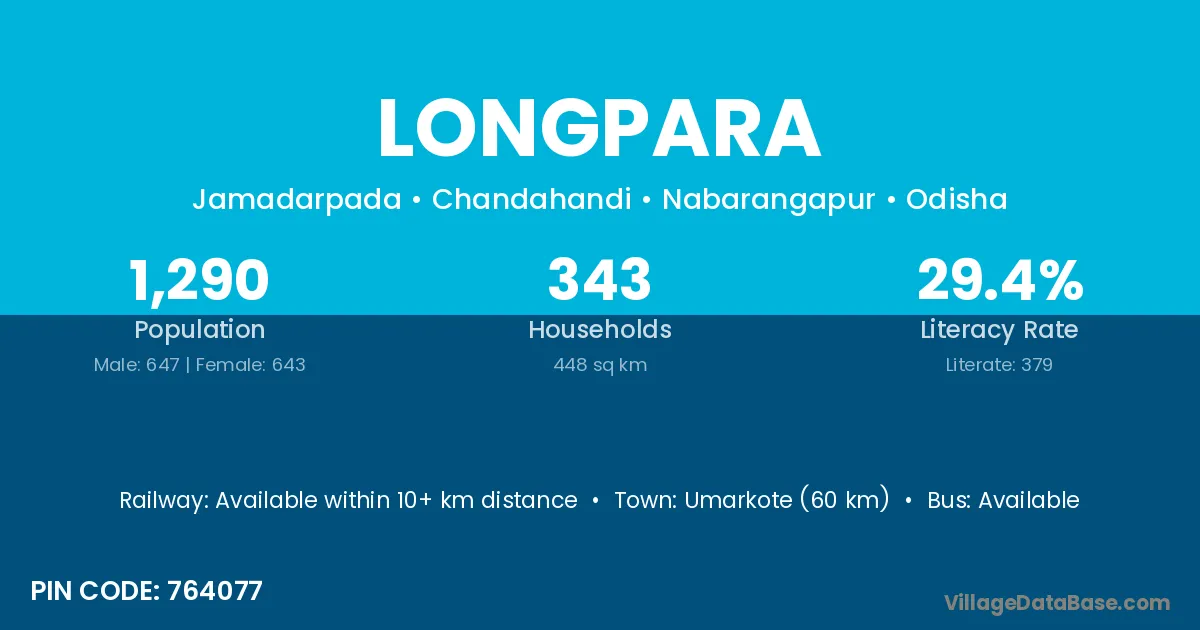 Longpara village has a total population of 1,290 people, of which 647 are males and 643 are females.