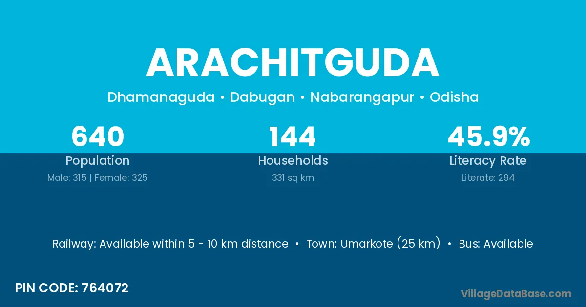 Arachitguda village has a total population of 640 people, of which 315 are males and 325 are females.